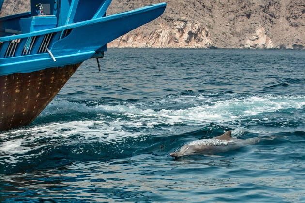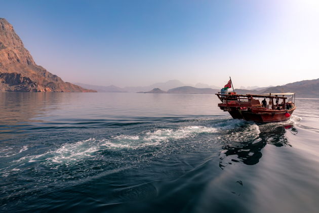 С порта начнётся круиз на традиционном оманском дау по живописному региону Хор-Шимм на полуострове Мусандам. Во время путешествия вы увидите прибрежные деревни и сможете наблюдать за дельфинами и другими морскими обитателями.