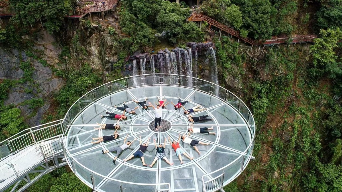 Рискнуть пройти по прозрачным платформам и насладиться головокружительными видами