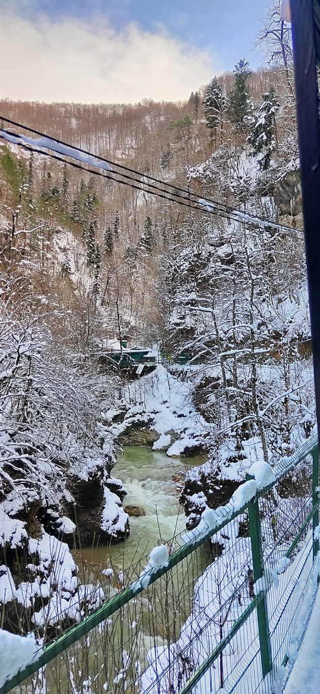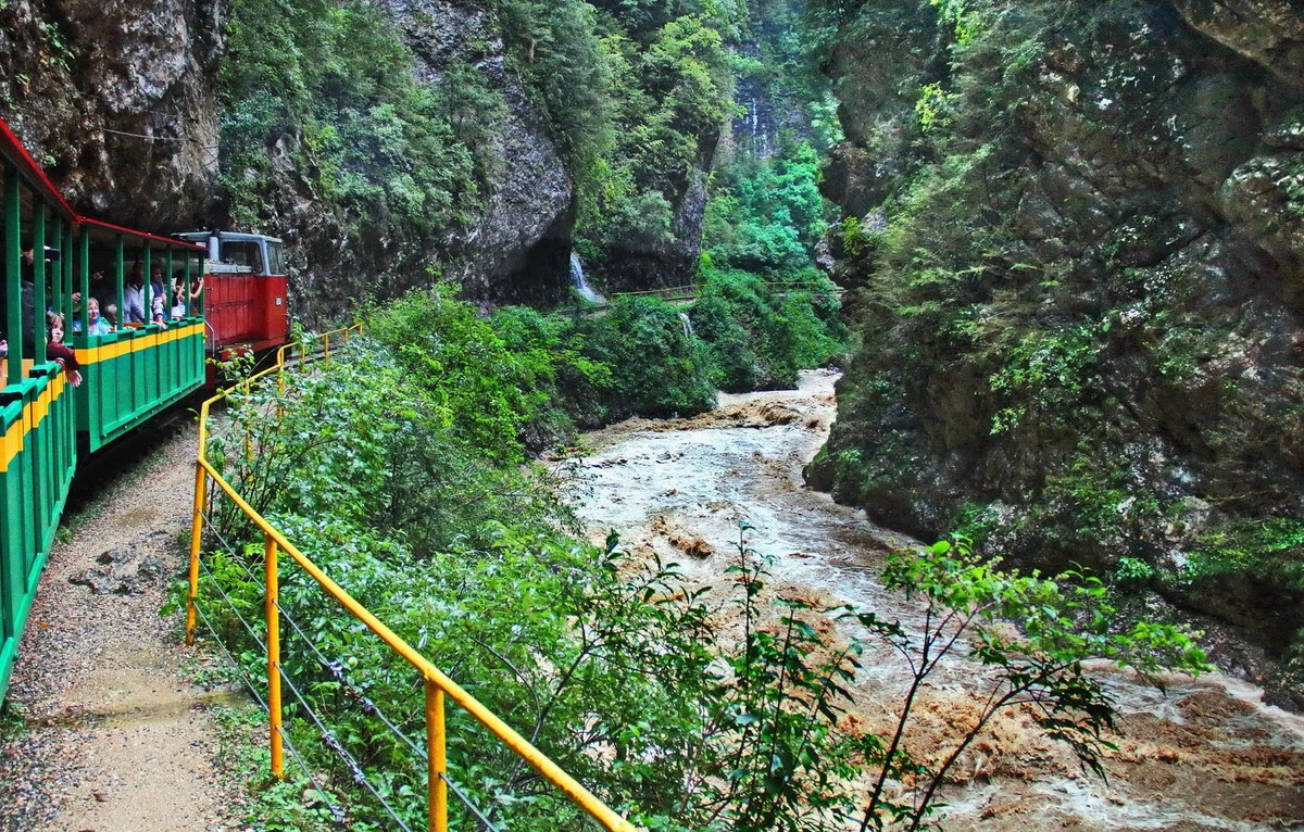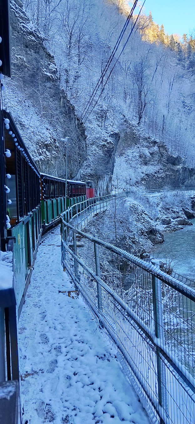 - После сядем на экскурсионный тепловоз: путь проложен вдоль ущелья бурной речки Курджипс сквозь скалы и реликтовый лес — зрелище завораживающее!