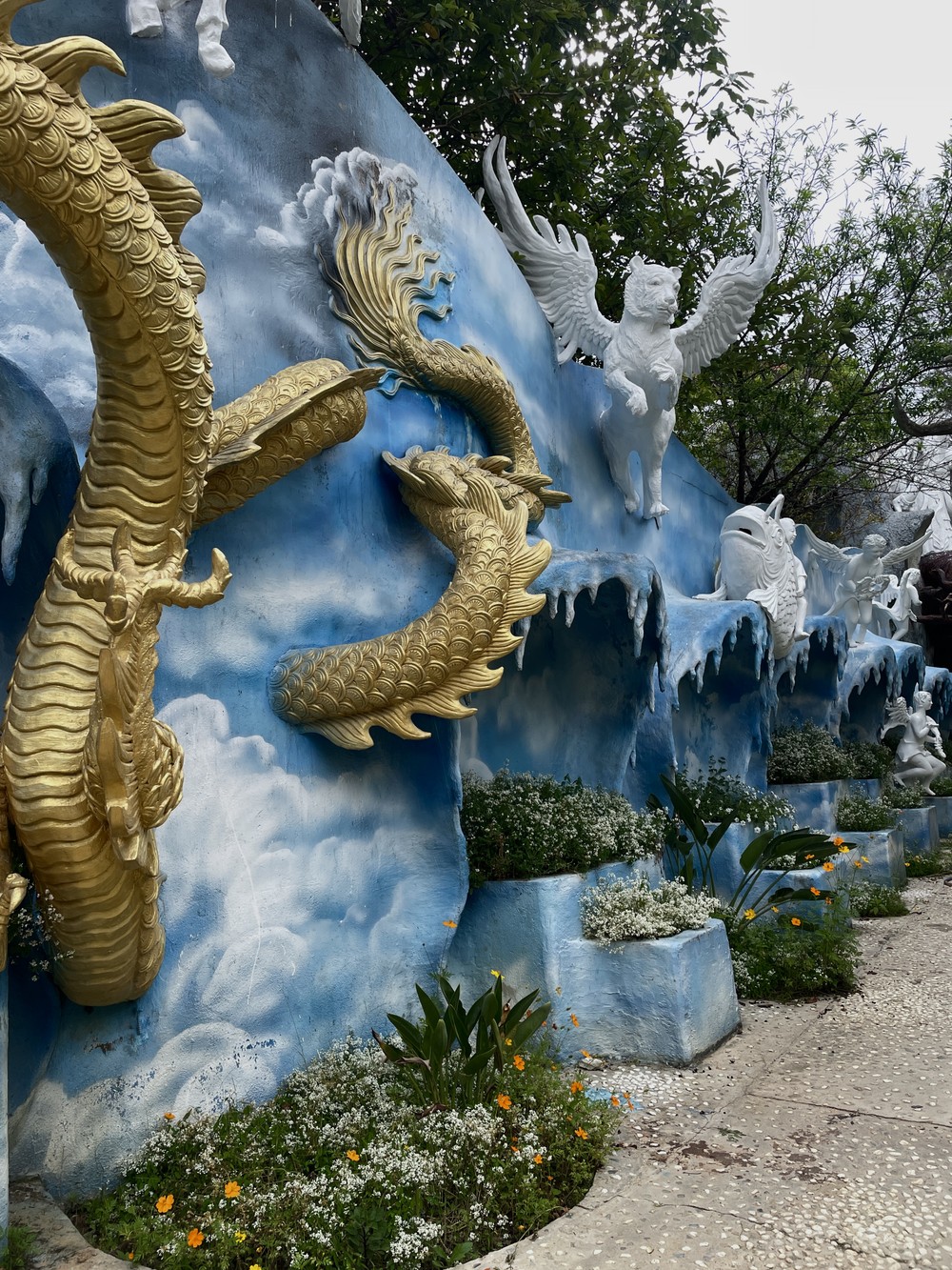 - Буддийский храм Линь Фуок, украшенный кусочками битого стекла и фарфора. Здесь находится самый большой в стране колокол желаний и 17-метровая статуя богини Гуаньинь из живых цветов