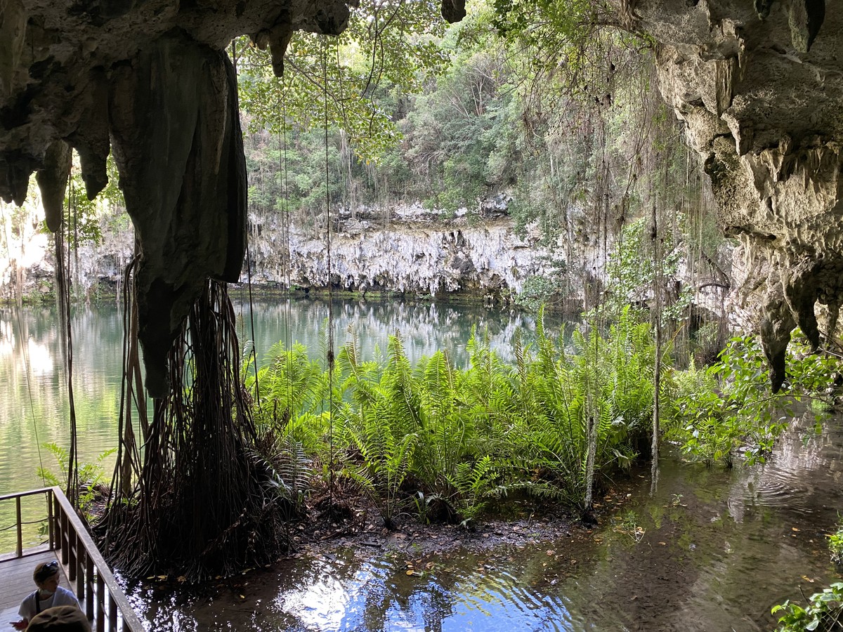 В завершение вы посетите пещеру, где на глубине около 15 метров находятся три озера с кристально чистой водой голубого и бирюзового оттенков. Вода в каждом водоёме отличается по химическому составу, а окружают их сталактиты, сталагмиты и сталагнаты. На плоту мы доплывём до четвёртого озера, где вы попадёте в место, напоминающее «Парк Юрского периода».