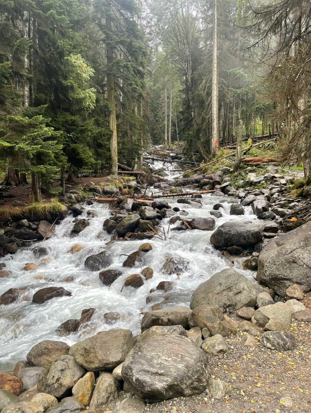 - Впереди у нас река Уллу-Муруджу — одна из самых чистых в Европе! Кроме того, её ледниковая вода ещё и полезная, так как богата серебром.