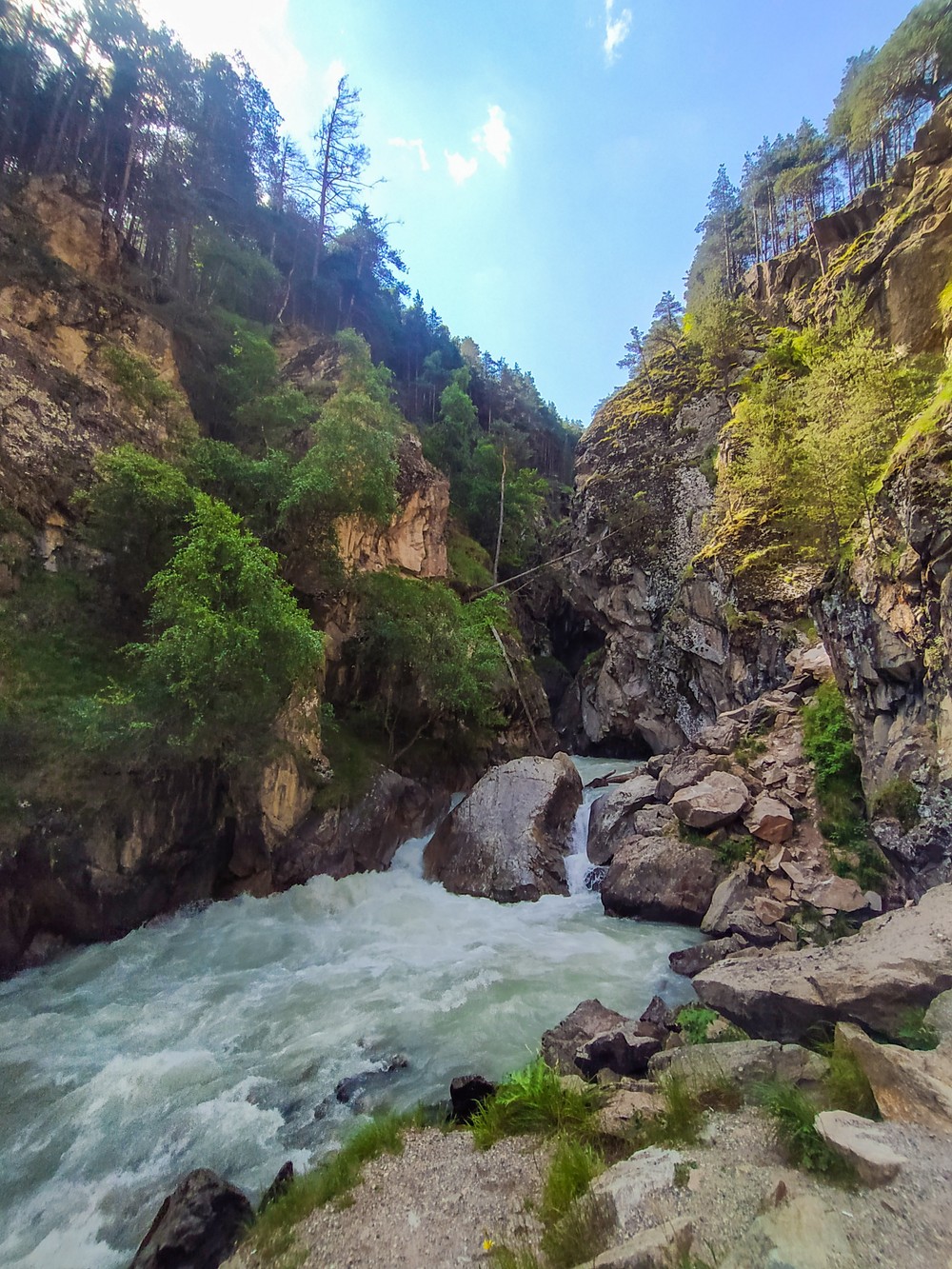 Выезжаем в 6 утра из Кисловодска, дорога займёт 3 часа. Проедем через Кавминводы в Кабардино-Балкарию. Увидим Тамбуканское озеро, где добывают знаменитую лечебную грязь. После Кабардинской равнины свернём в Баксанское ущелье, где сделаем санитарную остановку (уборные + кафе). Дорога становится всё уже — это мы въезжаем в отроги Скалистого хребта, напоминающие Гранд-Каньон. На поворотах можно даже увидеть ледники Бокового хребта.
