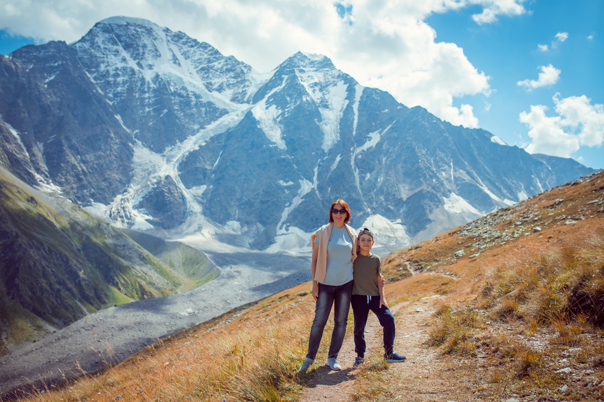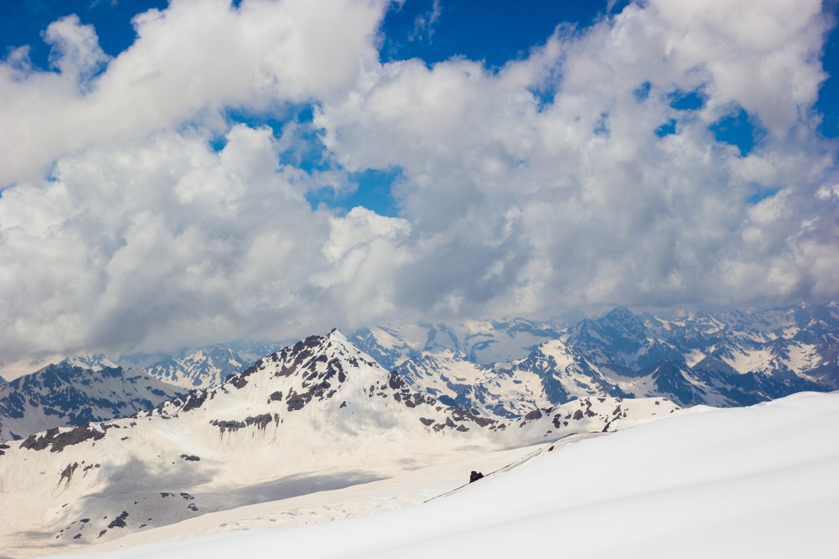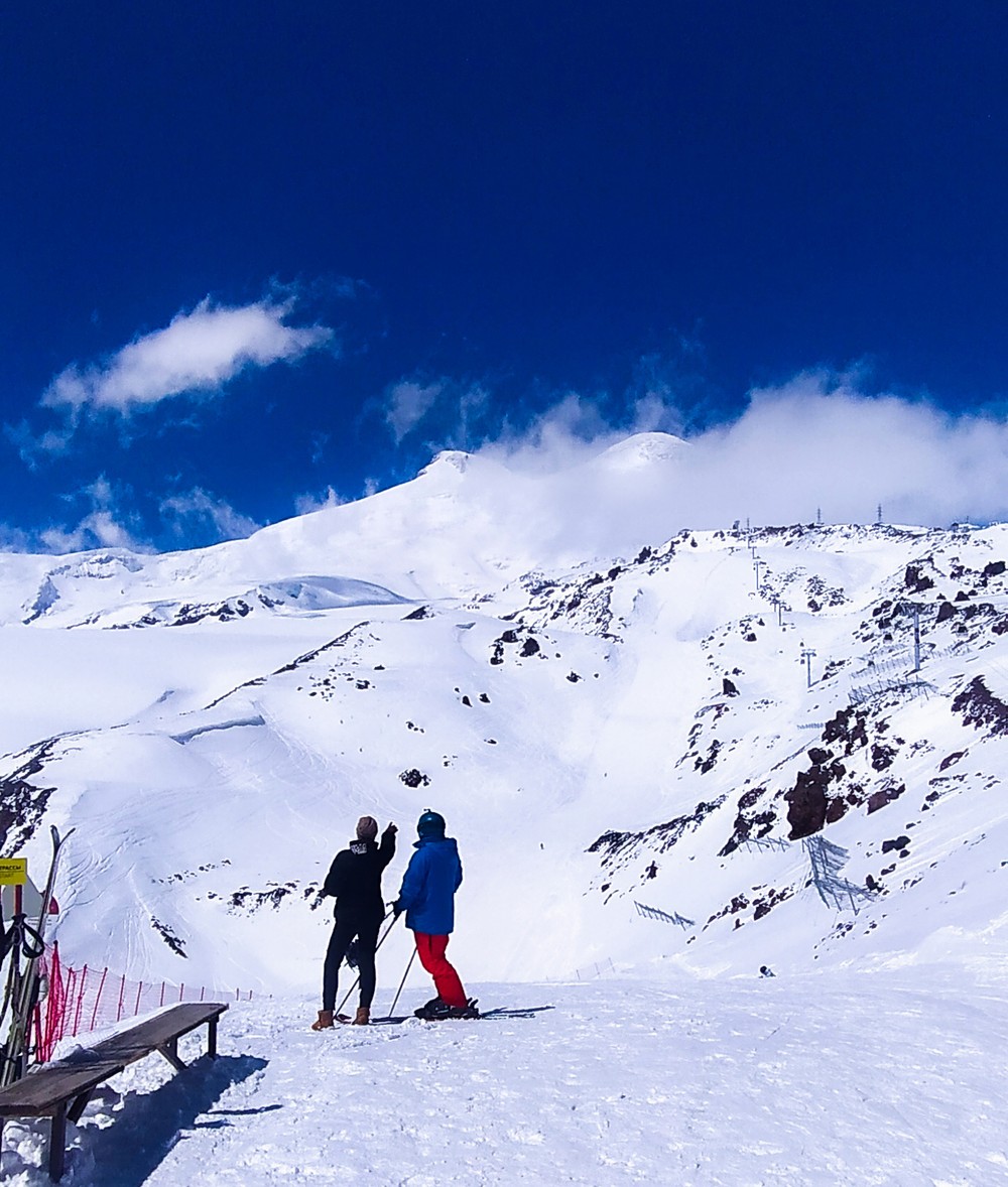 Дорога привела нас до отметки 2000 м — мы у подножия горы Чегет. Здесь построена первая в СССР канатная дорога. Вы сможете прокатиться на открытой кресельной канатке на высоту 3100 м. Отсюда открывается шикарный вид на Эльбрус, ледник «Семёрка», Ушбу и Баксанское ущелье. На Чегете мы пробудем где-то 2 часа.
