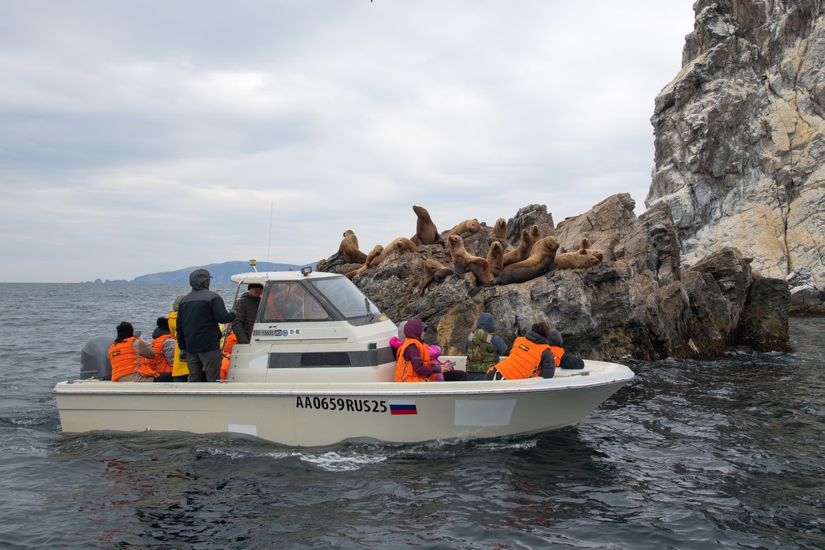 8:00 — выход в море. Переход до острова Рикорда занимает около 1,5 часов. Мы отправимся вдоль островов архипелага императрицы Евгении: Русского, Попова, Рейнеке и Пахтусова. По маршруту — захватывающие виды и отвесные скалы. Причала нет, высадка — прямо на берег, возможен спуск по лестнице или без неё. При сильном прибое есть шанс намочить ноги.