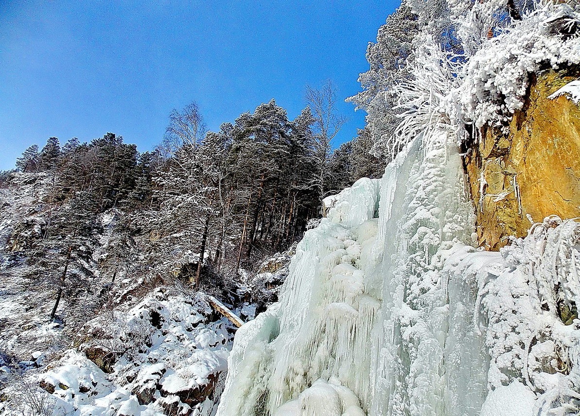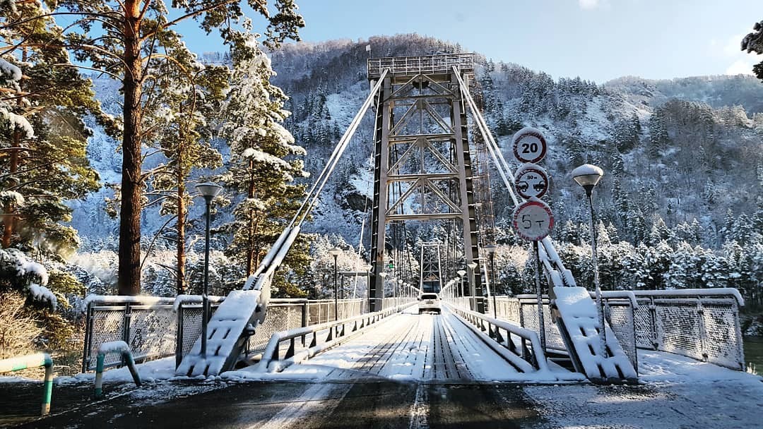 Из Горно-Алтайска мы проедем до села Барангол, в пути наслаждаясь горными панорамами Алтая и синей лентой Катуни. Затем мы преодолеем живописный подвесной мост над рекой и совершим приятный трекинг по зимнему лесу к застывшему Камышлинскому водопаду. Пока ноги будут работать, глаза будут отдыхать — перед вами раскинутся скальные пейзажи и заросли можжевельника. А у самого водопада, скованного льдом, вам откроется легенда о любви Камыш и Ла из враждующих алтайских племен.