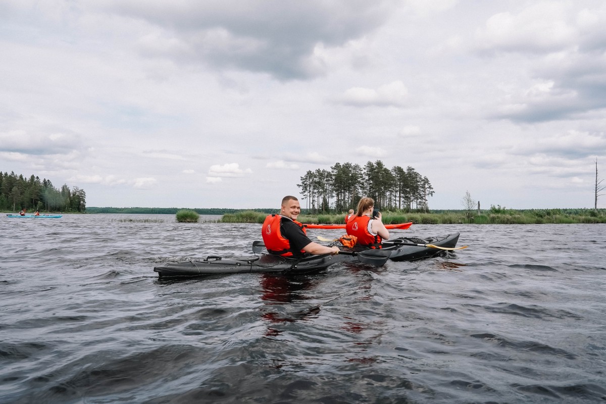 На днях побывали на прогулке на каяках. Несмотря на то, что поначалу было страшно и немного сложно, положительных впечатлений осталось гораздо больше. Никита всё подробно рассказал о технике безопасности, объяснил как правильно работать веслом. Сама прогулка прошла в неспешном темпе, была возможность насладиться природой, покушать ягоды на островах и даже походить по топкому болоту. P.s. Отдельно хотелось бы обратить внимание на то, с каким увлечением Никита провёл прогулку, столько всего рассказал. Видно, что человек любит своё дело.