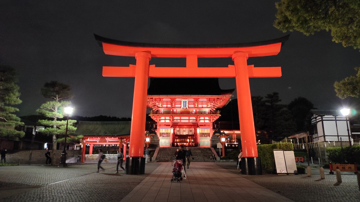 - Фусими-Инари-тайся — святилище на горе, к которому мы пройдём через бесконечный лабиринт из красных торий