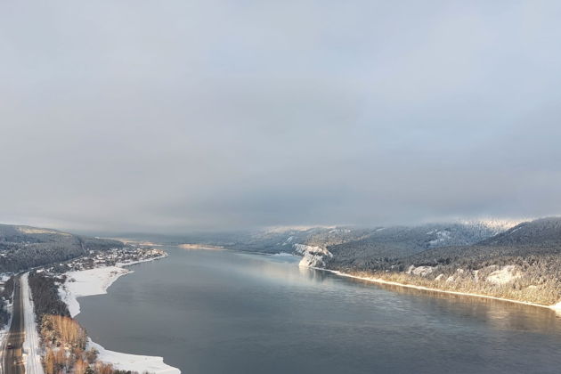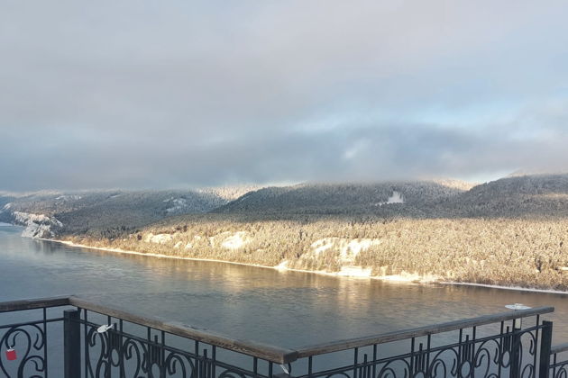 Далее мы поедем по красивой серпантинной дороге и поднимемся на Слизневский утес, к смотровой площадке Царь-рыба, с шикарными видами на Енисей и скалы.