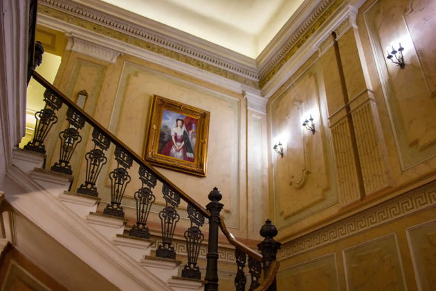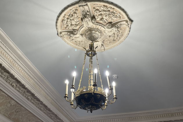 Мы побываем в восстановленных интерьерах великолепного особняка, пройдем по впечатляющей мраморной парадной лестнице, украшенной искусной вязью бронзовой решетки, посетим Парадную анфиладу второго этажа, пышный Танцевальный зал с историческим паркетом и огромным зеркалом во всю стену, побываем в Каминном зале, где специально раскрыли и сохранили фрагмент исторической лепнины XVIII века.