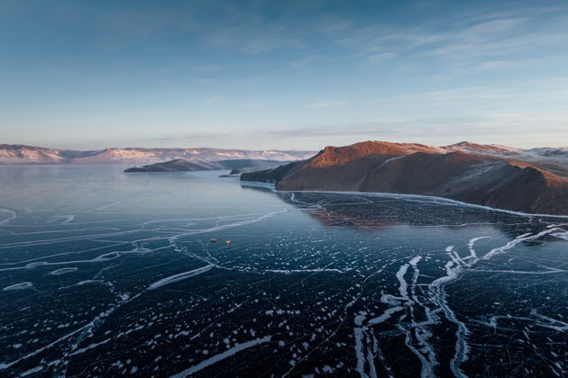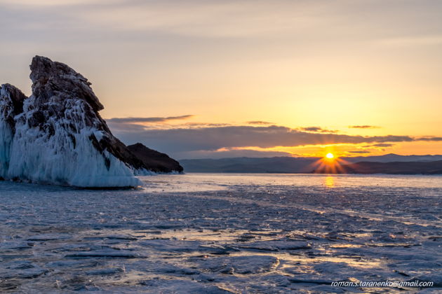 Зимой Байкал превращается в ледяное королевство: кристально прозрачный лёд с фантастическими узорами трещин, белоснежные наледи, гигантские торосы и сверкающие гроты создают пейзажи, которых нет больше нигде в мире.