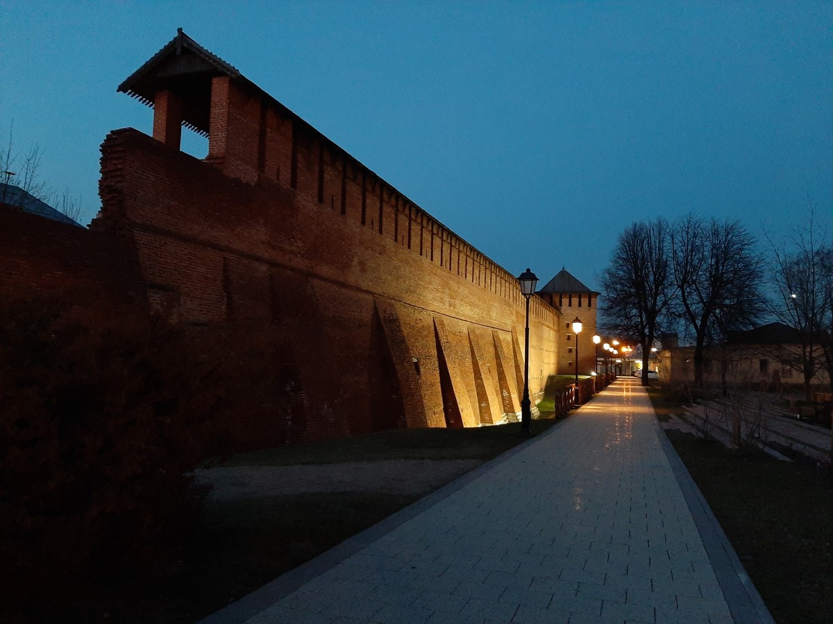 Коломенский кремль. Вечером он особенно красив: старинные стены и башни освещены мягким светом — одновременно и уютным, и загадочным. Погрузимся в историю города и кремля, вспомним коломенские мифы и легенды.
