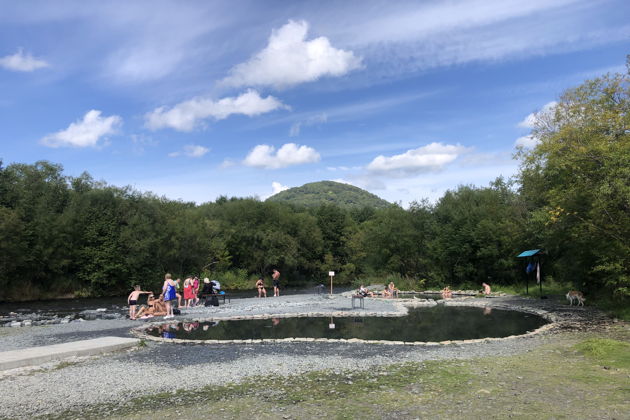 После прогулки к реке возвращаемся и переезжаем к Малкинским термальным источникам. Вы искупаетесь в горячих озерцах на свежем воздухе среди сопок и гор. По желанию или в зимнее время можно искупаться в термальном бассейне на территории туристической базы.