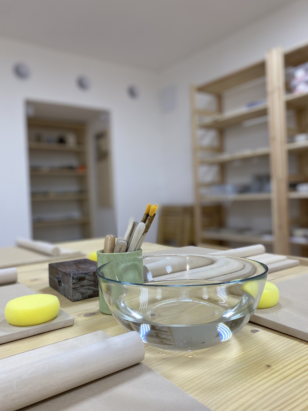 - В зависимости от расписания вы освоите разные техники. По утрам мы делаем тарелки или шкатулки методом ручной лепки. Днём и вечером крутим на гончарном круге — пиалы, чайные пары, боулы для завтраков, тарелки или наборы для суши