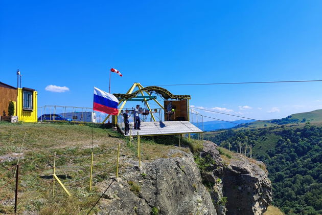 * Далее едем в КЧР и делаем остановку на Зиплайне. Это новый аттракцион, полет через ущелье по тросу. Желающие смогут прокатиться на Зиплайне. Если же не захотите, можно будет покататься на качелях над пропастью!