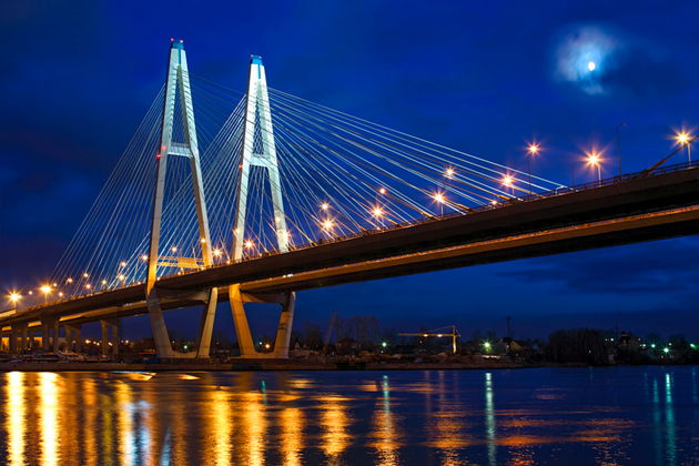 — Малая Невка, акватория между Биржевым и Вантовым мостами («Морской фасад»): — Тучков мост; — стадион «Петровский»; — мост Бетанкура; — яхт-клуб; — «Газпром Арена»; Дворцовым и Троицким мостами: — Эрмитаж; — Дворцовая набережная; — Мраморный дворец; — стрелка Васильевского острова; — Ростральные колонны; — Биржевой мост; — «Летучий голландец»; — Петропавловская крепость; — мечеть; — акватория Невы между Троицким и Литейным мостами: — фрегат «Благодать»; — Домик Петра; — «Аврора»; — Сампсониевский мост; — Летний сад; — акватория Невы между Литейным и Большеохтинским мостами: — площадь Ленина; — Финляндский вокзал; — «Кресты»; — «Большой дом»; — памятник кораблю «Полтава»; — памятник жертвам политических репрессий; — водонапорная башня; — Смольный собор; — разведение Большеохтинского моста.