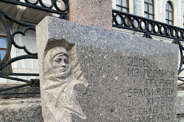 Далее вы переместитесь к «Блокадному колодцу» — памятный знак в месте, где горожане набирали воду в холодные военные зимы