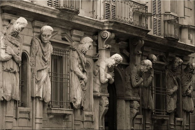 • Палаццо дельи Оменони — дворец, получивший свое название благодаря 8 атлантам украшающим фасад здания. Львы также являются постоянной темой украшений здания (здесь жил архитектор по фамилии Леоне «лев». Под карнизом изображены два льва, раздирающие сатира на куски.