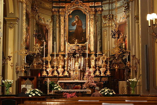 • Церковь Святого Александра — прекрасный образец архитектуры XVII в. Строительство церкви с двумя боковыми колокольнями началось в 1601 году. Фасад храма богато украшен барельефами. Кафедра в центральном зале, с которой читают проповеди, украшена драгоценными камнями. В храме находятся известные картины и фрески художников Камилло Прокаччини и Даниэле Креспи, конец XVI-начало XVII веков.