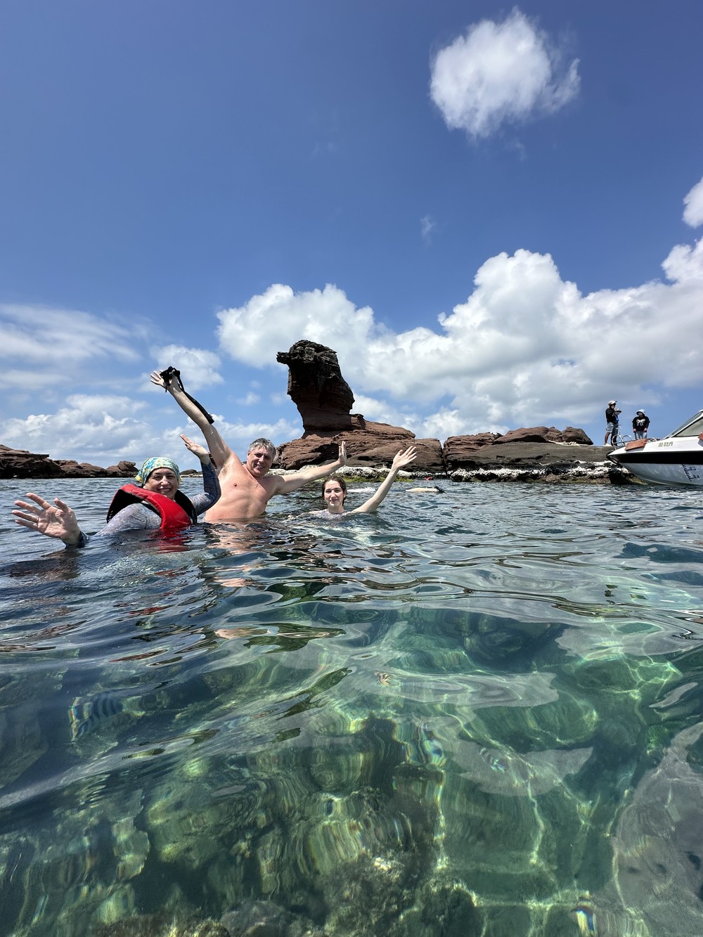 - У капитана есть лицензия на перевозки. Все лодки оборудованы спасательными жилетами и кругами. При посадке и перед снорклингом проводим инструктаж по безопасности