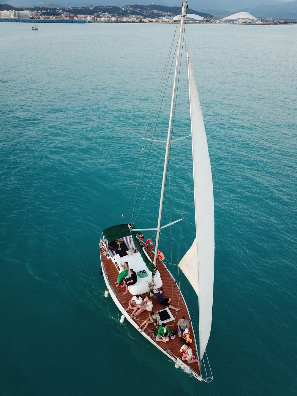 Будем счастливы посвятить вас в «искусство обуздания ветра»! Выйдем в море на парусной яхте, где вы насладитесь видами Кавказских гор, сможете устроить небольшой пикник на борту, встретить дельфинов (если повезёт), летом — искупаться в открытом море. А наш капитан в рамках небольшого мастер-класса расскажет о работе парусов и даже научит вас управлять яхтой.