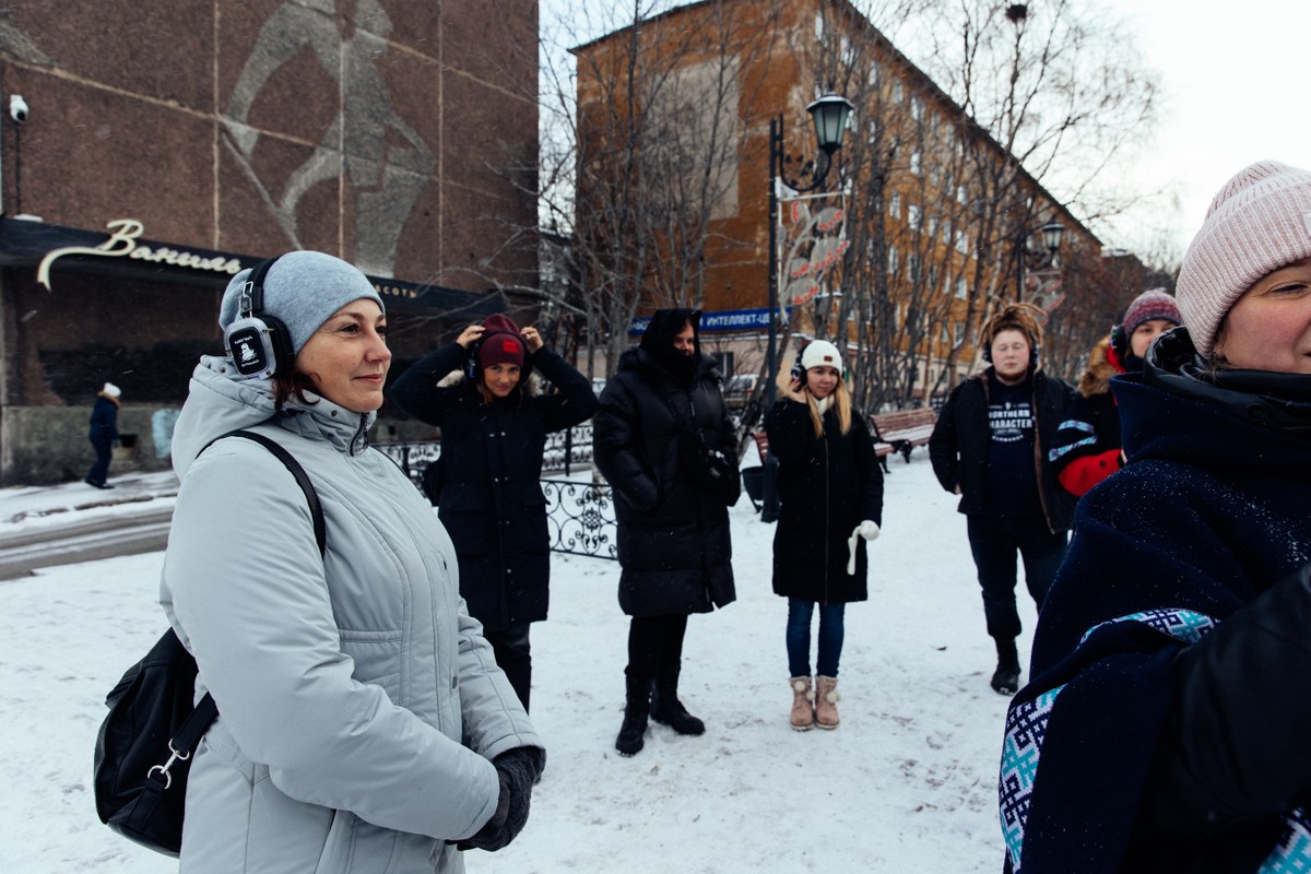 С помощью аудиодорожки спектакля вы перенесётесь в атмосферу кинопроизводства в местах, где создавались фильмы «Везёт», «На выдохе», «Баренцево море» и «Вера». Но наша задача — рассказать вам также и о крае! Вы услышите, чем известна область и как живёт столица Заполярья.