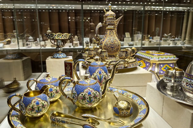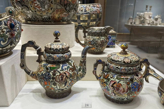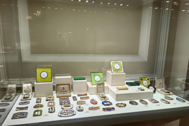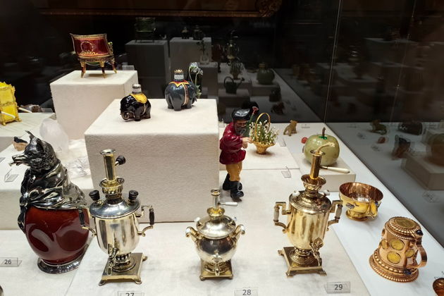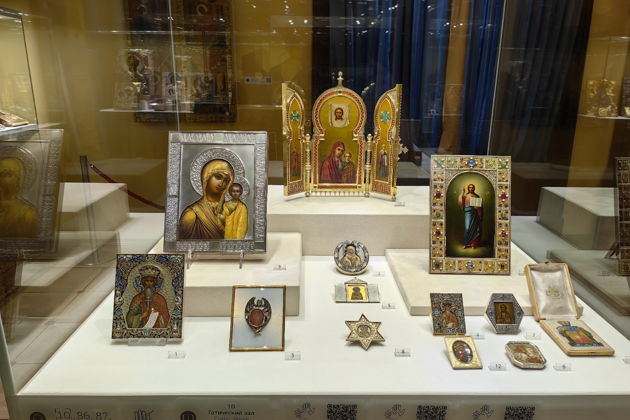 Наряду с изделиями Фаберже в музее представлена великолепная коллекция русских эмалей, икон, изделий из серебра, выполненных иностранными специалистами, а также русскими мастерами-ювелирами, которые имели собственные мастерские, но при этом сотрудничали с Фаберже, являлись поставщиками императорского двора, создавали уникальные предметы для царских особ, знати и просто богатых людей.