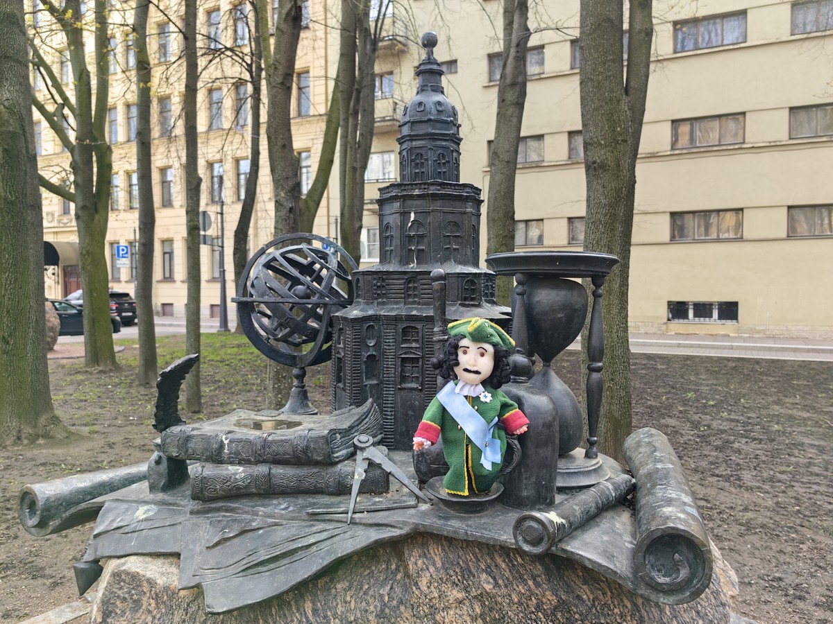 Большая часть маршрута вымощена плитами длиной 84 сантиметра — именно таким был шаг первого русского императора. Его образ будет встречаться нам снова и снова… Почему бы не представить, что сам Пётр ведёт нас по любимому городу? И показывает: