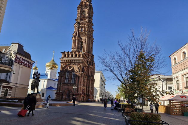 Если же мы выберем улицу Баумана для дальнейшей прогулки, то прогуляемся по самому известному местному променаду, где вас ждут множество торговых лавок, фонтанов, самая старая аптека и самая высокая колокольня в Казани.