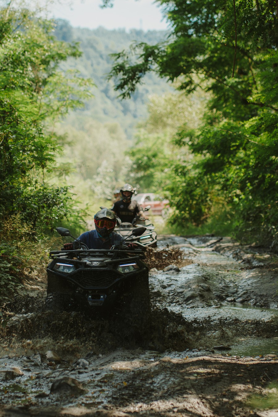- В одиночку на квадроцикле могут ехать только совершеннолетние мужчины. Женщины и дети с 14 лет едут в сопровождении инструктора, сидящего вторым номером на квадроцикле за вами