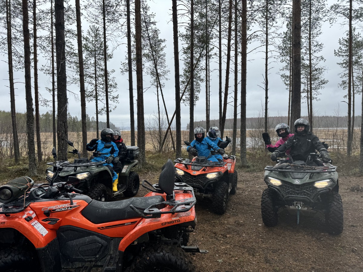 Садимся на вездеходы квадро-трофи — это новая современная техника с электроусилителями руля. Профессиональная экипировка — от сапогов до шлемов 1 класса безопасности — прилагается. Мембранные костюмы или кроссовые джерси выдаются по погоде.