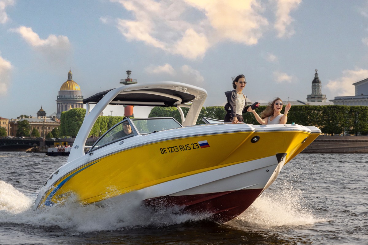 Морской катер, самый большой в своём классе, с удобной рассадкой на корме и носовой части до 10 человек и с прекрасным обзором — можно идти хоть в центр города, хоть в залив.