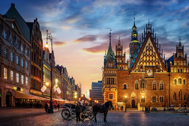 Ратуша, Рыночная площадь, Домики Ясь и Мальгося Скотный двор, Университет Вроцлавский, Фонд Оссолинеум, Песчаный остров, Тумский остров, Кафедральный костел