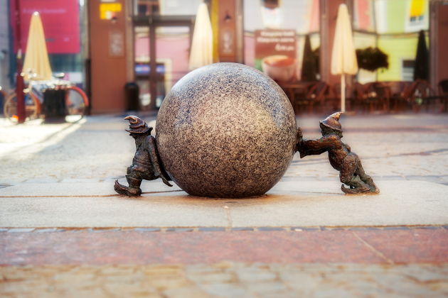 Начнем знакомство с Папы — главного гнома Вроцлава. И отправимся в старую часть города, к Рыночной площади и Ратуше. Прогуляемся и заглянем в дворики, что бы отыскать милых городских проказников.