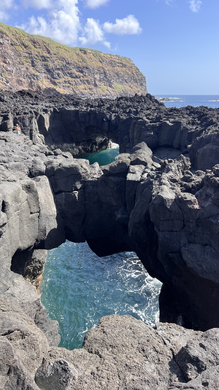- Термальные источники Понта-да-Феррария. Горячая вулканическая вода здесь смешивается с Атлантическим океаном, создавая природный спа-бассейн прямо в море. Температура воды — около +40 градусов: и у вас будет возможность в неё окунуться!