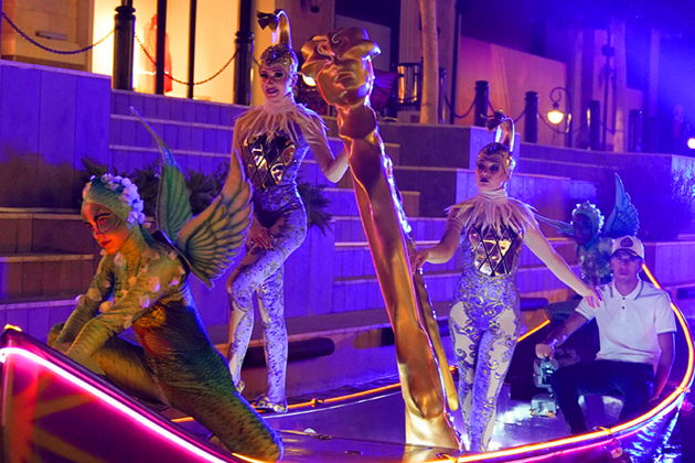 На центральном променаде вас ждёт грандиозный парад лодок, где герои сказок и супергерои проплывают по каналу под яркими огнями и живую музыку. Фасад величественного замка становится экраном для фантастического лазерного шоу, а музыкальные фонтаны взмывают в такт мелодиям, создавая незабываемое зрелище. В программе также акробаты, театрализованные мини-спектакли, герои детских мультфильмов, и даже шоу на водных джетпаках.