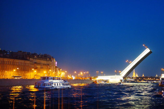 • Все ночные прогулки проводятся независимо от факта разводки мостов в эту ночь. С актуальной информацией о разводке мостов на дату прогулки можно ознакомиться на сайте mostotrest-spb.ru. В дни государственных праздников 1, 9 мая, 12 июня и 4 ноября разводка мостов не осуществляется.