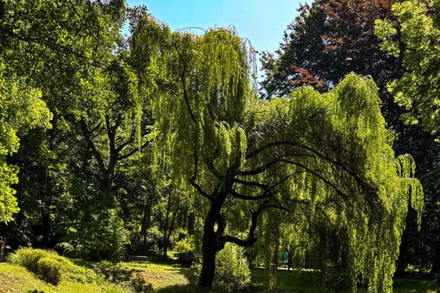Насладимся самым старым ботаническим садом Кенигсберга под тенью раскидистых редких деревьев и журчанием фонтана в пруду.