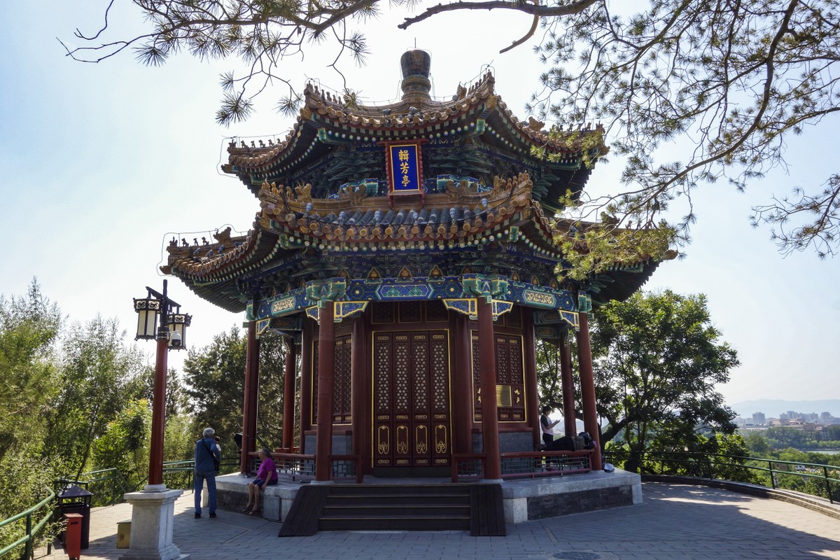 Цзиншань, ранее бывший садом императора, состоит из пяти холмов, на каждом из которых — дворец в китайском стиле. Я расскажу, из какой точки парка видны вдалеке Запретный город на юге, Олимпийский парк на севере, Старый Пекин на западе и современное высотное здание на востоке.
