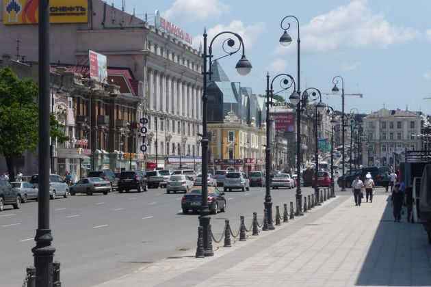 С ул. Адмирала Фокина легко попасть на набережную Спортивной гавани, украшенную красивым светомузыкальным фонтаном. Прогуливаясь вдоль берега, мы выйдем к дому путешественника Арсеньева, который сделал немалый вклад в развитие Дальнего Востока. Внутри здания работает музей, который рассказывает о жизни исследователя. Недалеко от дома Арсеньева располагаются железнодорожный и морской вокзалы. Вы сможете полюбоваться их старинной архитектурой, осмотреть паровоз ЕА – 3306 и памятный знак «9288 Транссиба», который указывает на окончание Транссибирской магистрали. В завершение экскурсии мы прогуляемся по Алеутской улице и выйдем на центральную площадь Владивостока.