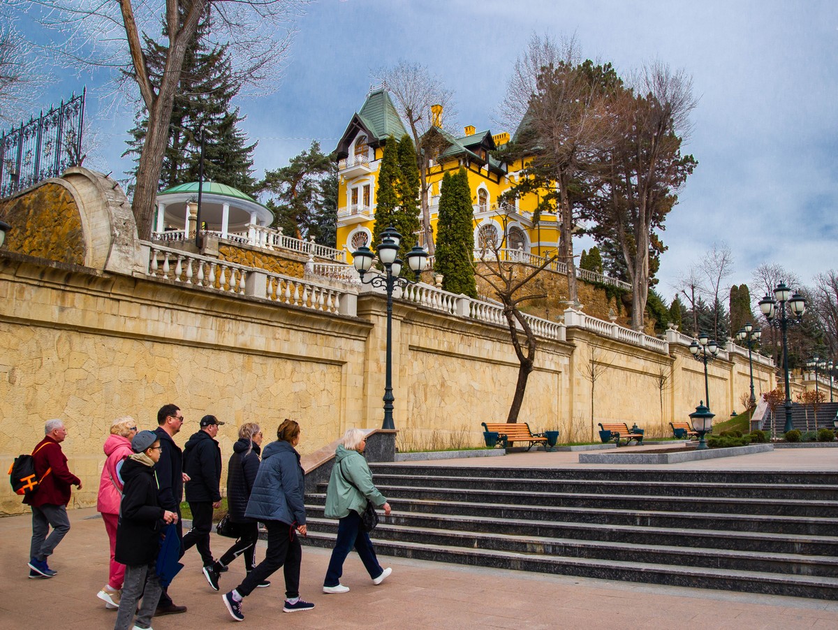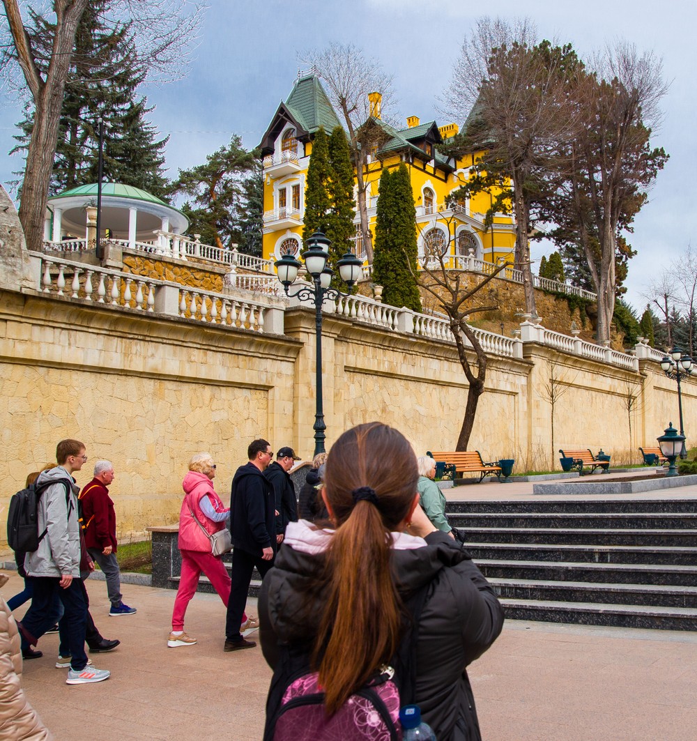 За 3,5 часа вы проедете по Кисловодску на автобусе, останавливаясь у знаковых объектов. Проследите путь города от основания до наших дней: будут и хроники, и выдающиеся имена, и тема лечения на водах. Попутно мы посоветуем, куда сходить и съездить, что посмотреть и попробовать, ответим на вопросы. Маршрут такой: