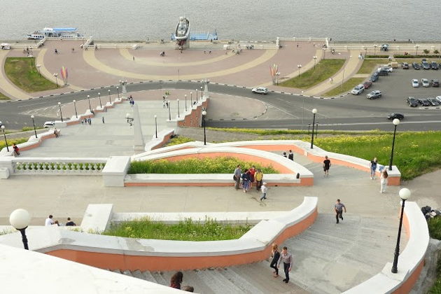 Нижегородский Кремль Чкаловская лестница памятник Минину и Пожарскому Строгановская церковь Здание Госбанка Собор Архангела Михаила