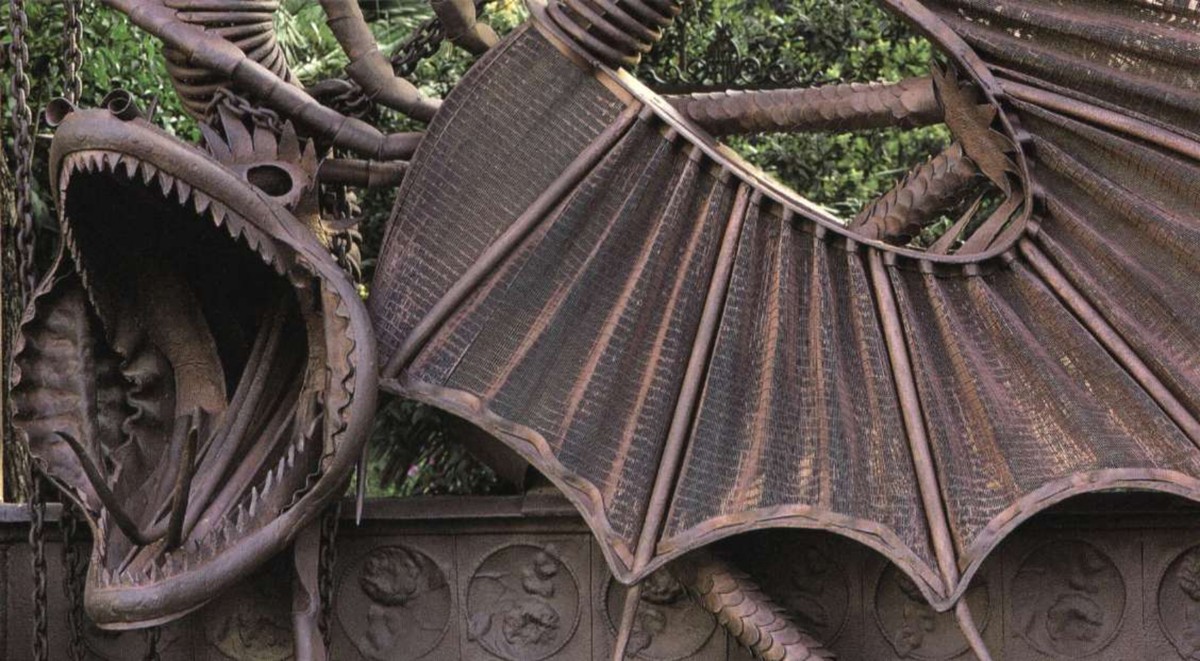 Павильоны усадьбы Гуэль в Педральбесе. Поговаривают, что дракон на центральных воротах временами оживает — и готов сожрать любого неприятеля.