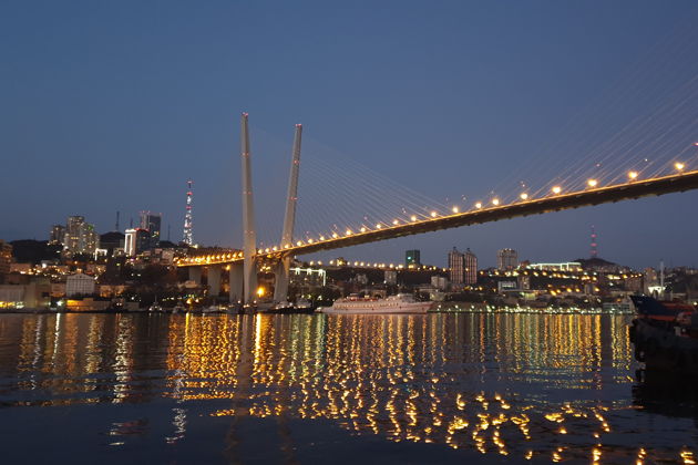 Мы узнаем, как статус «свободного порта» повлиял на развитие города в период его становления, и как этот статус влияет на развитие Владивостока сейчас. Проводим солнце в Амурский залив с самой романтичной видовой площадки и направимся «ловить» прекрасные вечерние панорамы с самых лучших ракурсов. Проедем по Золотому и Русскому мостам в лучах ночной подсветки и увидим огни порто-франко со стороны острова Русский.