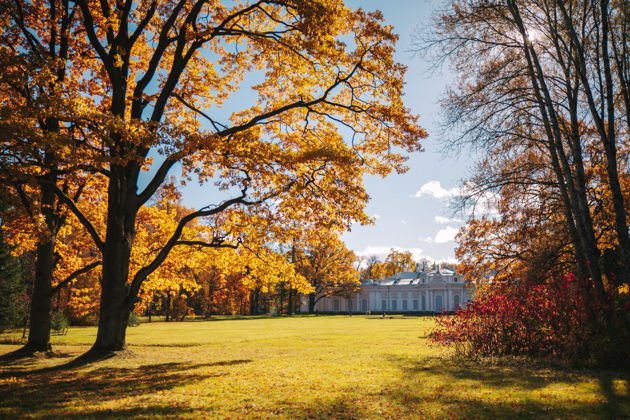• Затем отправитесь в Китайский дворец, который является частью комплекса императрицы Екатерины II «Собственная дача». Китайским дворец стали называть, потому что в его интерьерах были использованы китайские мотивы. Здесь же разместились богатые коллекции предметов, выполненных мастерами из Китая. В нём нет ни одной повторяющей другую комнаты, а паркет XVIII века выполнен по рисункам Ринальди. Шедевром интерьерного искусства по праву считается Стеклярусный кабинет в Китайском дворце. Его стены украшают 12 панно в резных золочёных рамах, на которых по стеклярусной основе шёлком вышиты цветы, пейзажи, сказочные птицы — выглядит всё это фантастически!