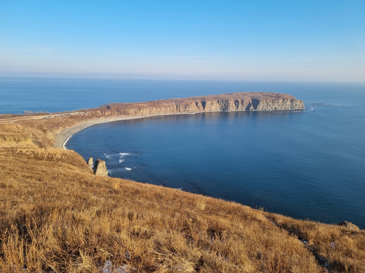 - Мыс Шмидта и бухта Карпинского. Спустимся пешком с самого высокого мыса острова до живописной бухты Карпинского