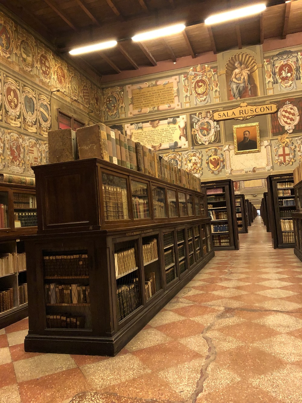 - Через изящную вереницу портиков дойдём до первого здания Болонского университета — Палаццо Архигимназии, посетим его аудитории и увидим невероятной красоты библиотеку. Поговорим об истории первого светского университета мира, о его ярких представителях, об учебном процессе и о том, что собой представляет университет в наше время.
