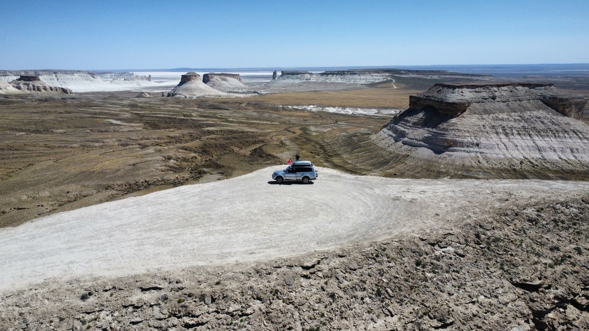 - Старт из Актау — 8:00. Едем до первой локации 2,5–3 часа