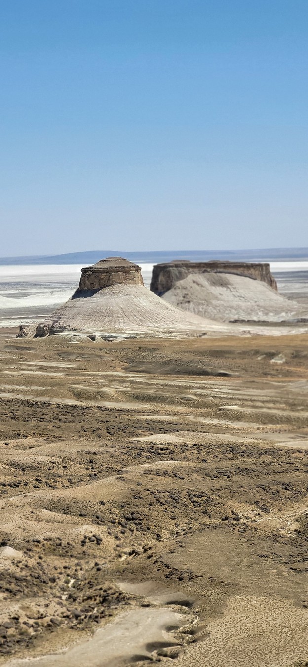 Гора правильной трапециевидной формы, её симметричность кажется почти рукотворной. Это один из самых необычных и загадочных пейзажей Мангистау.