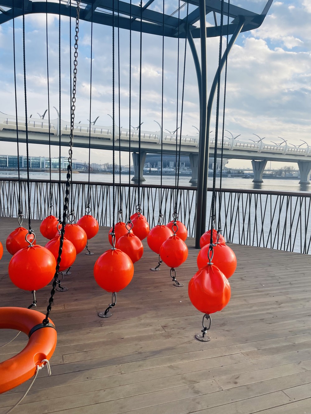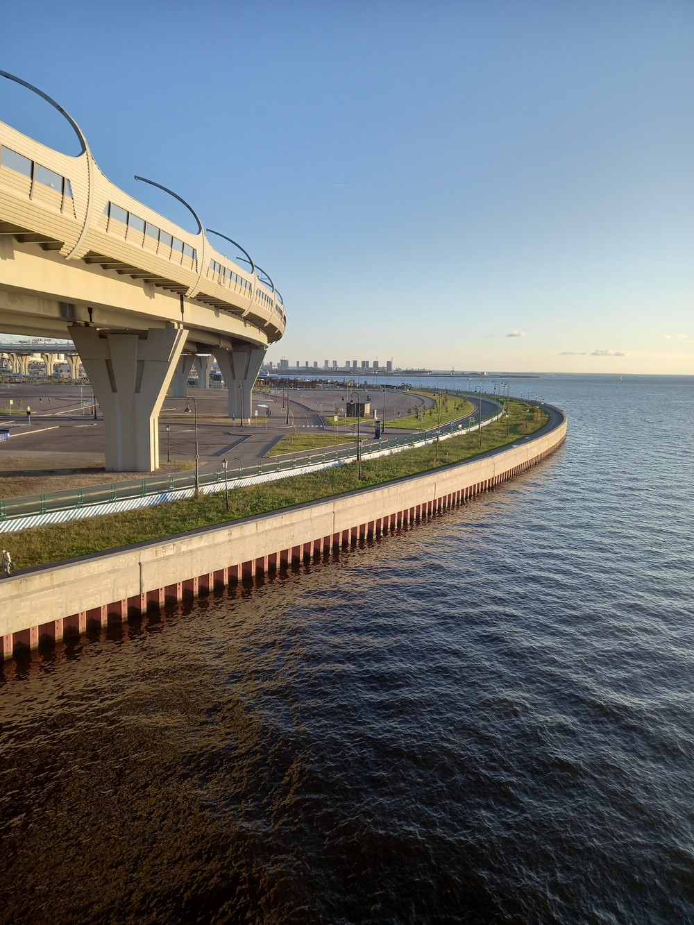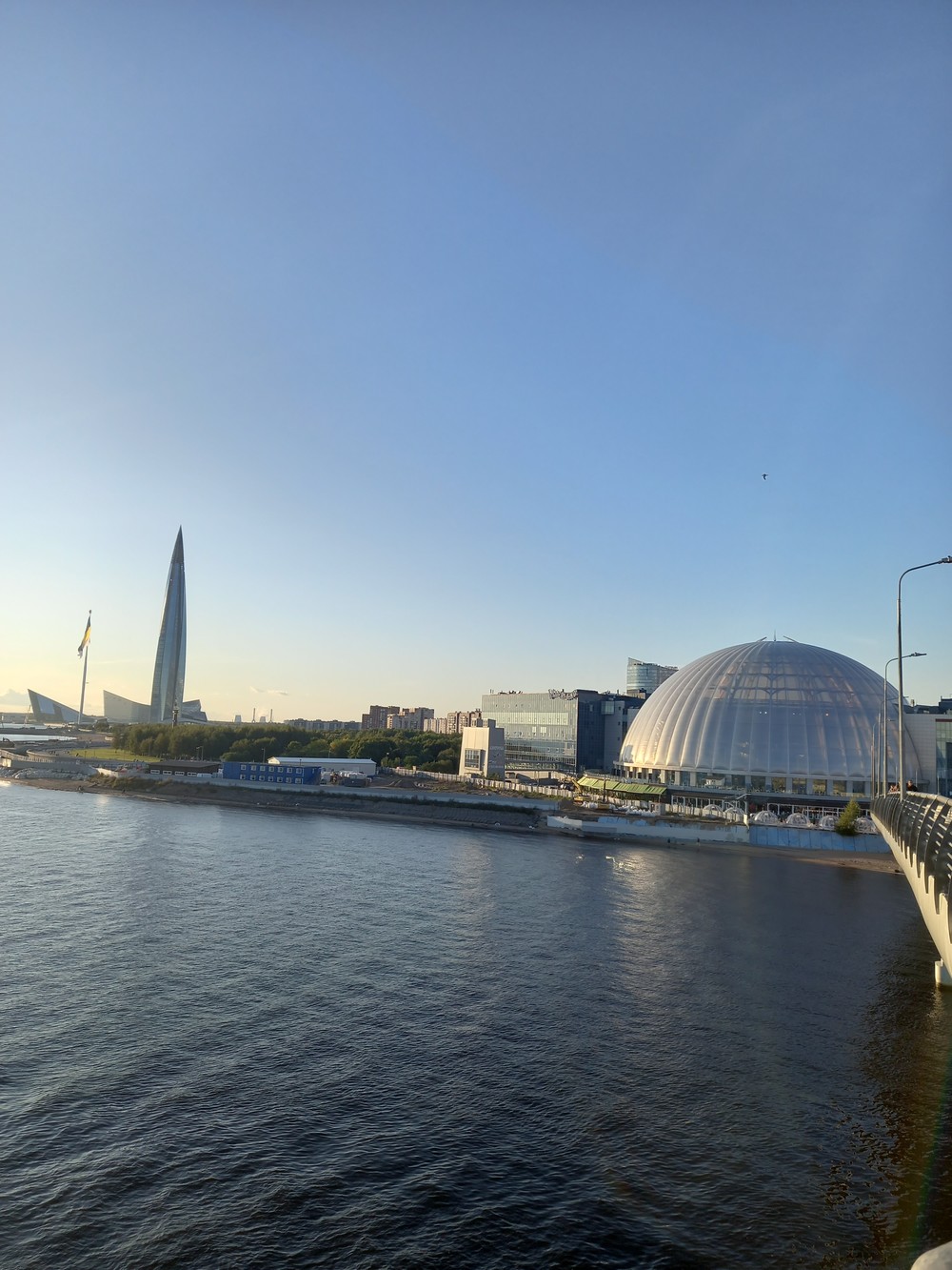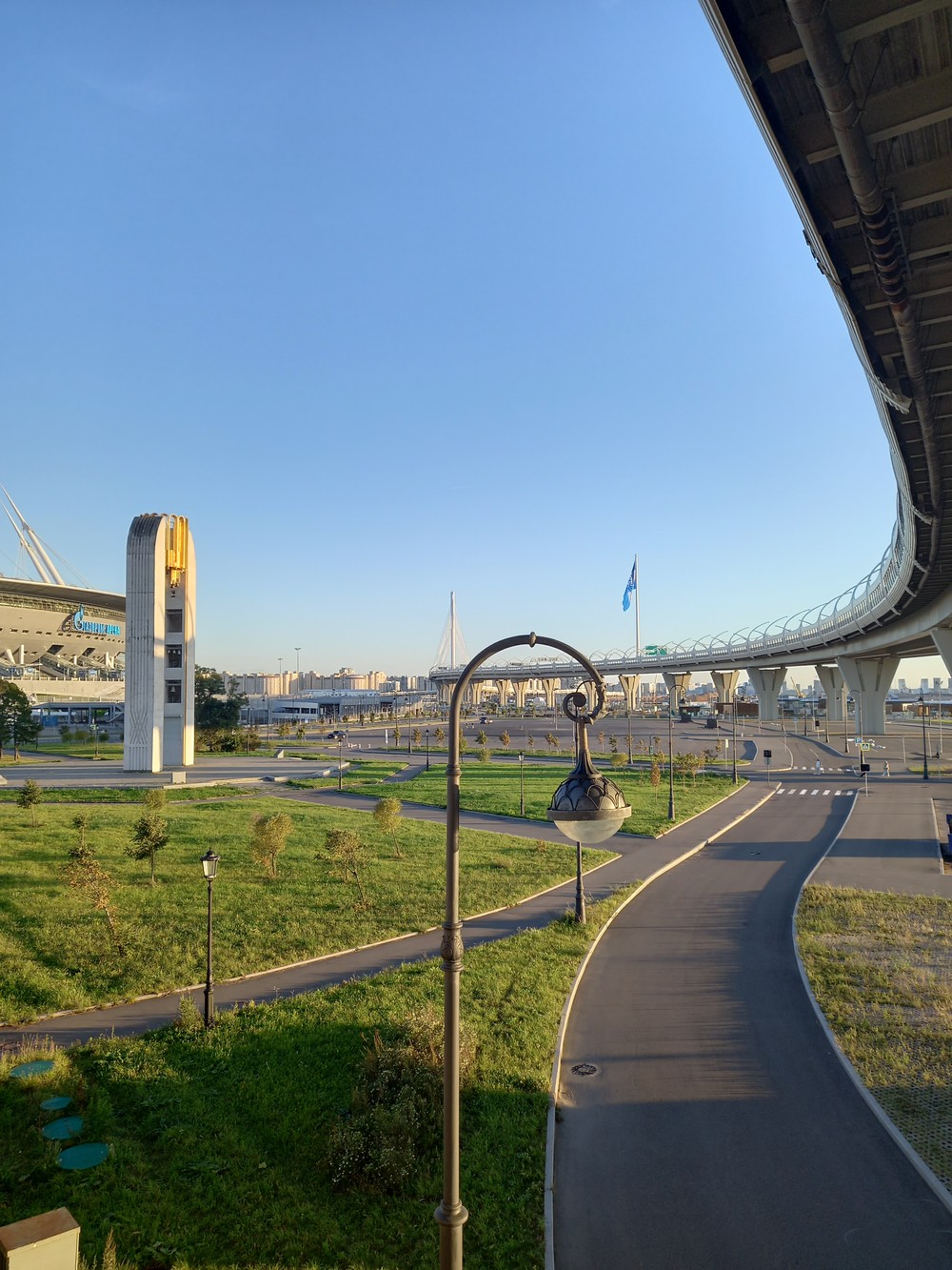 Ультрасовременное пространство вокруг стадиона Зенит Арена — отличное место для прогулок и отдыха. С новой набережной можно полюбоваться обворожительными видами на голубую гладь Финского залива с белоснежными парусниками и самым высоким небоскребом в Европе — «Лахта-центр», увидеть огромные флагштоки, а также часть ЗСД, проходящей прямо над заливом. Это пространство всем своим видом напоминает нам кадры из кинофильма про будущее.